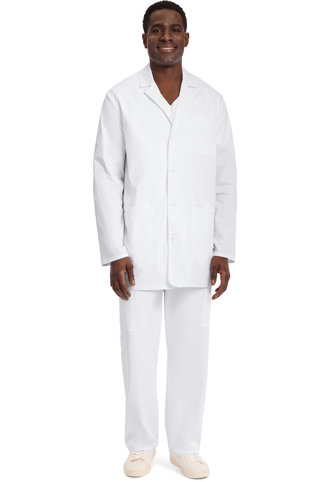 A crisp, classic piece that shows your pro status. Light enough to layer over everyday scrubs, this official-looking lab coat has deep front pockets, plus one at the chest for smaller tools. A smart essential for style-minded medical workers.