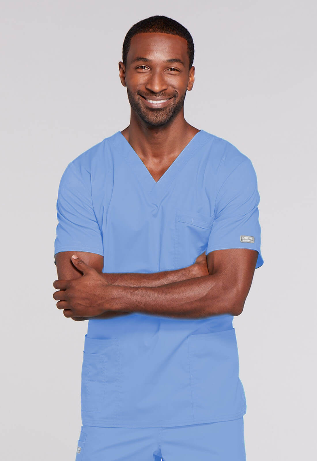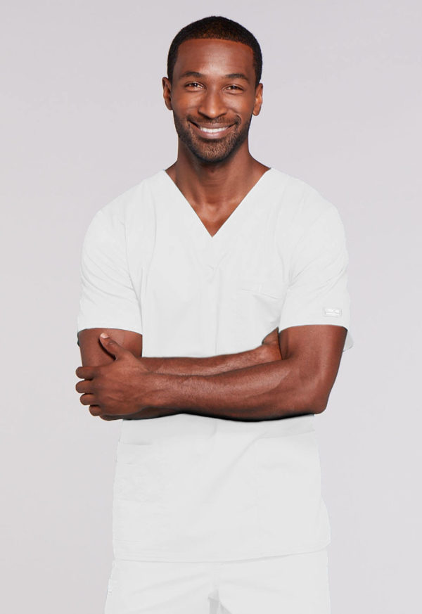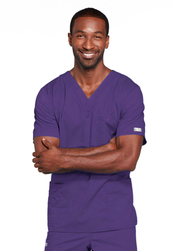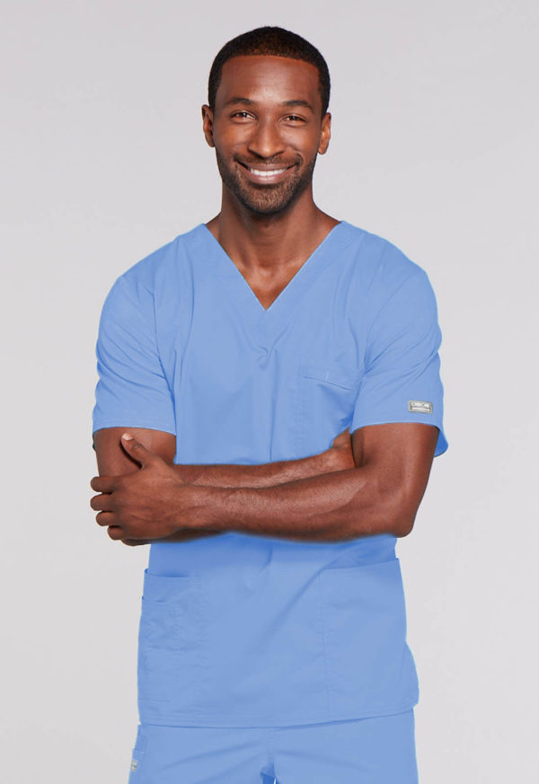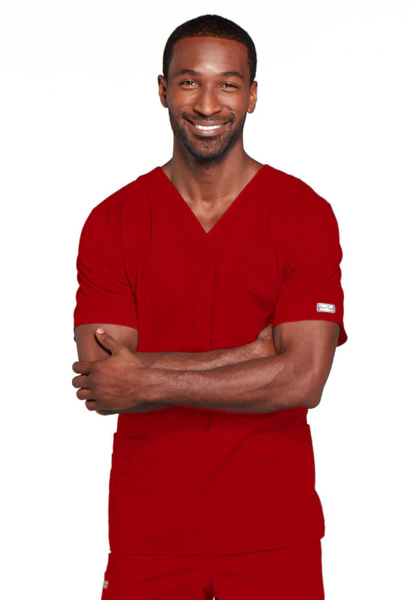 A Unisex Traditional fit V-neck features double needle stitching. The chest pocket features an instrument holder. Also included are two patch pockets, an additional instrument/cell phone pocket on right side, back yoke and side vents. Center back length: 28″