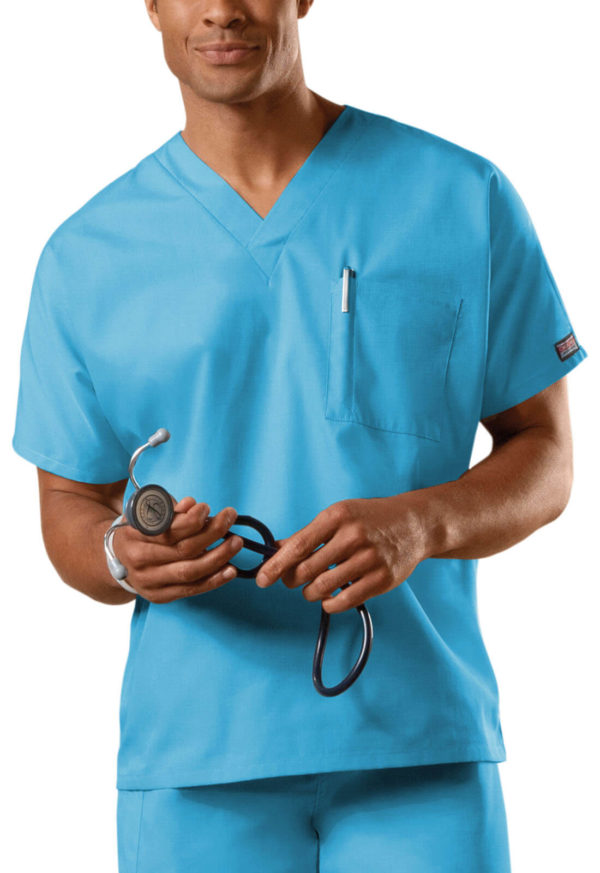 A dolman sleeve, V-neck Unisex Traditional fit tunic has a chest pocket with a pencil slot. This style looks great tucked in or untucked. Center back length 27.5″