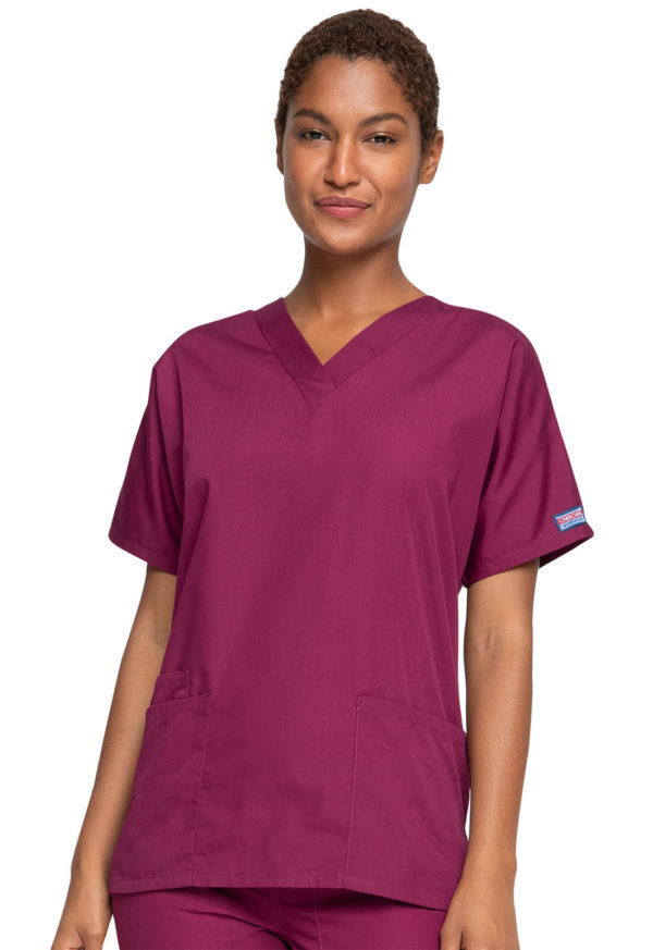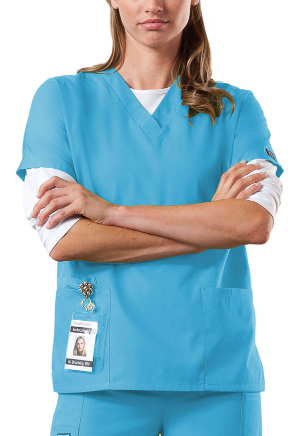 A Traditional fit, dolman sleeve, V-neck top with side seam vents, two patch pockets and a cell phone pocket.